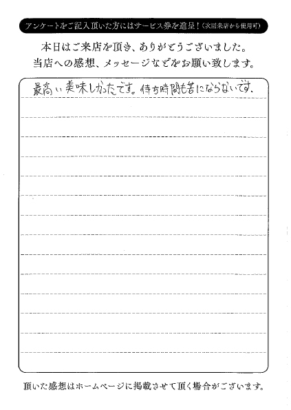 お客様に記入して頂きました、アンケートをご紹介致します。