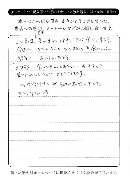 お客様に記入して頂きました、アンケートをご紹介致します。
