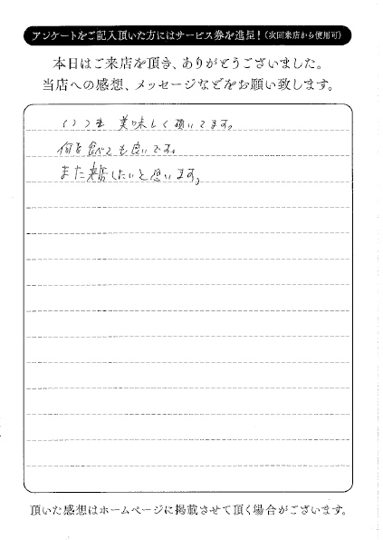 いつも美味しく頂いてます。何を食べても良いです。また来店したいと思います。
